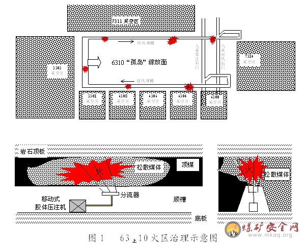 63上10工作面是南屯矿第一个综采放顶煤试验工作面,工作面尚未安装就出现自然发火隐患,作为接续面,如不能正常接续生产,对矿井的产量影响是巨大的,因此回采前必须扑灭火灾隐患,保证回采过程中不复燃。