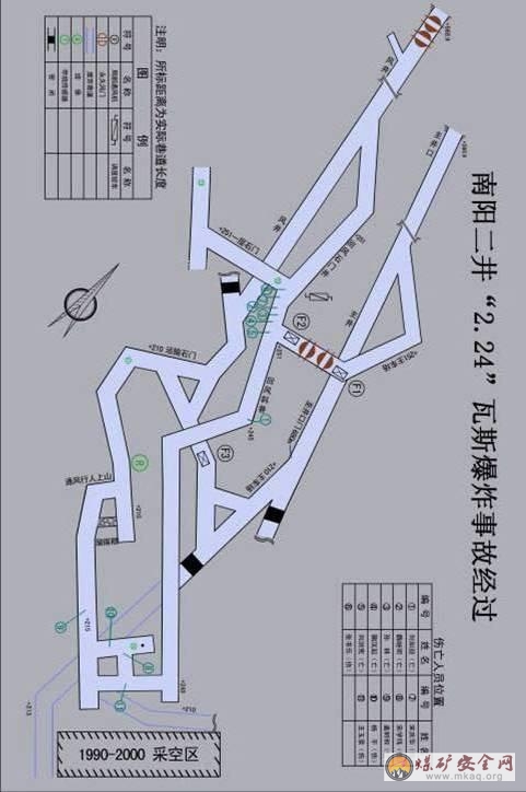 1、矿井通风系统不合理。《煤矿安全规程》第一百零九条规定,进、回风井之间和主要进、回风巷之间的每个联络巷中,必须砌筑永久性风墙;需要使用的联络巷,必须安设2道连锁的正向风门和2道反向风门。