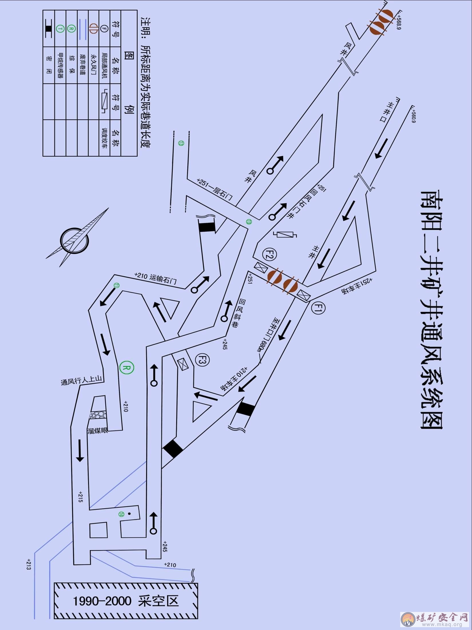南阳二井在+210采煤工作面形成后,未及时安设该水平进、回风联络巷风门,导致风流短路;+251掘进人员为便于推车,将+251进、回风联络巷两道风门连锁装置人为拆除,两道风门同时打开时,导致风流短路。