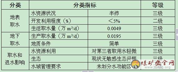 矿区取水由地表水和地下水两部分组成。生活用水取自为位于矿区东侧的海坝河,生产用水取自本矿井矿坑涌水。