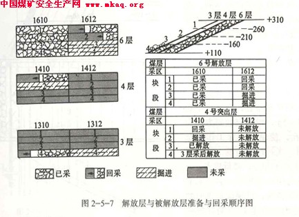 2.要合理安排解放层与被解放层开采顺序和采掘工作面相互关系。