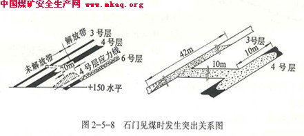 1.石门见煤处应避开地质构造区域和沼气突出主要危险区。