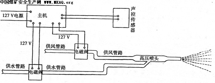 图2 高压远程放炮自动喷雾装置原理图