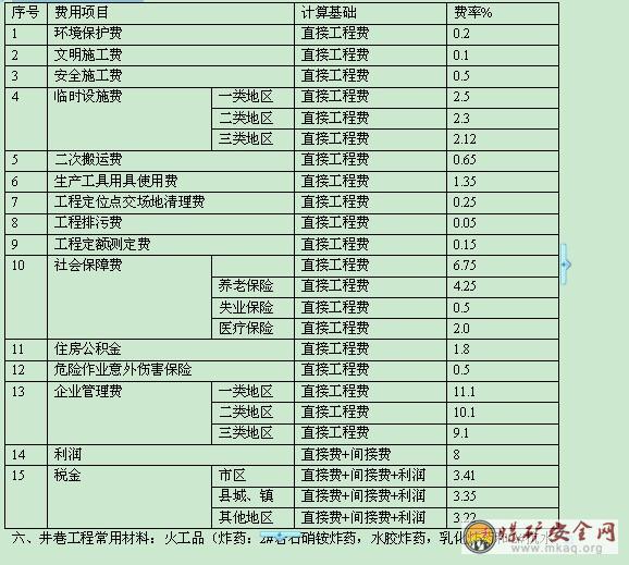 保险);企业管理费(管理人员工资、差旅交通费、办公费、固定资产使用费《房屋、设备、仪器等折旧及维修费用》、工具用具使用费、工会经费、职工教育经费、劳动保险费《指企业支付离退休职工的劳保统筹基金、价格补贴、医药费,异地安家补助费、职工退职金,六个月以上病假人员工资,伤葬补助费,抚恤金和离退休干部各项费用);财产保险费;财务费《短期贷款利息、汇兑净损失、调剂外汇手续费、金融机构手续费,以及为筹集资金发生的其它费用》;税金;其它(技术转让费,技术开发费、业务招待费、排污费、绿化费、广告费、公证费、法律顾问费、审计费、咨询费等)。