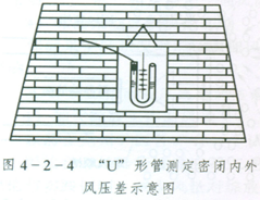从以上均压状态的设立可以看出.要做好区域均压必须做到:①保持通风系统和风量的稳定,改变通风系统或风量后,要重新测定均压状态;②在采空区密闭墙上安设“U”形水柱计,随时监测采空区密闭内外风压差,如图4一2一4所示;③定期进行均压状态测定,一般每月测定1次。均压区域涉及范围较大时,必须绘制通风压能图。