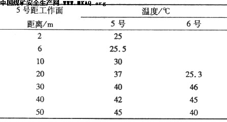 第二组有5、6号2个温度传感器依次等距离20m从开切眼向工作面方向排列,观察采空区遗煤自然发火规律及确定工作面的最低月进度,其测点布置如置如图1所示。