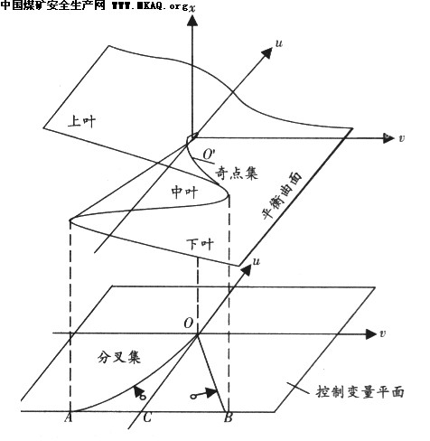 当控制变量u,v满足分叉集方程时,系统则处于突跳前的临界状态,所以可得到系统发生突变的充分条件(临界条件)。