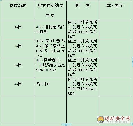 参加排放瓦斯人员的岗位及职责表