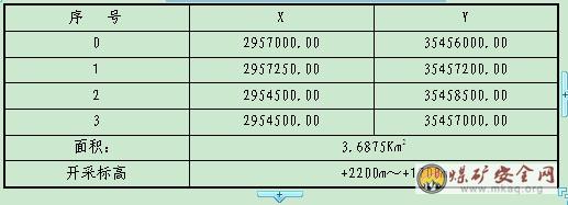 根据贵州省国土资源厅2007年8月24日颁发的威宁县龙场镇克沟煤矿《采矿许可证》(证号:5200000711562),该矿采矿权范围由4个拐点坐标圈定,开采深度+2200m~+1700m,矿区面积:3.6875km2,矿区走向长度2.860km,倾斜宽度1.272km。其拐点坐标详见表1-1。