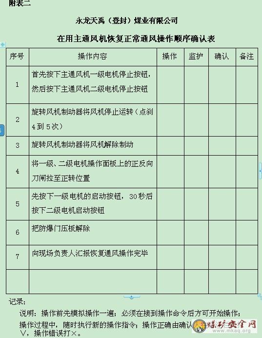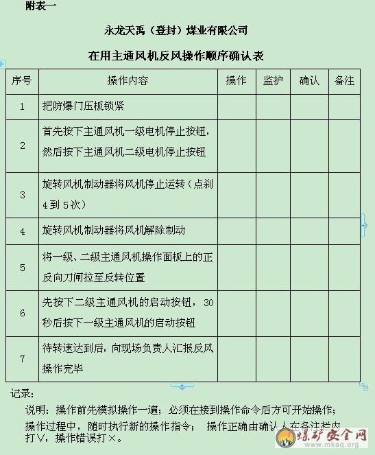 15、主通风机正反转运行状态的观测工作由主通风机司机做好记录。
