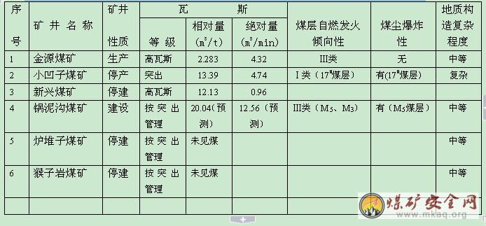出矿井,有2个高瓦斯矿井,具体情况见表一(开采条件表)。