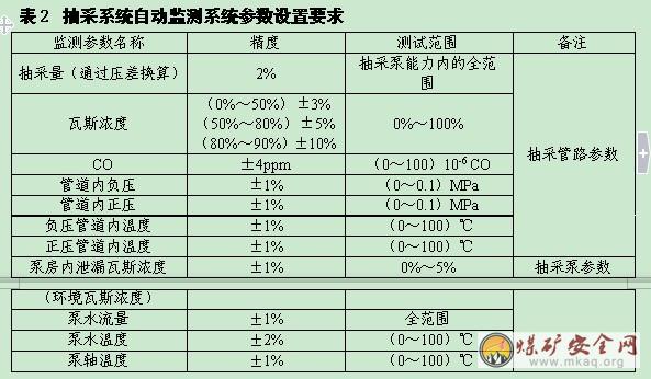 第三十四条 抽采系统自动监测系统参数设置符合表2要求。