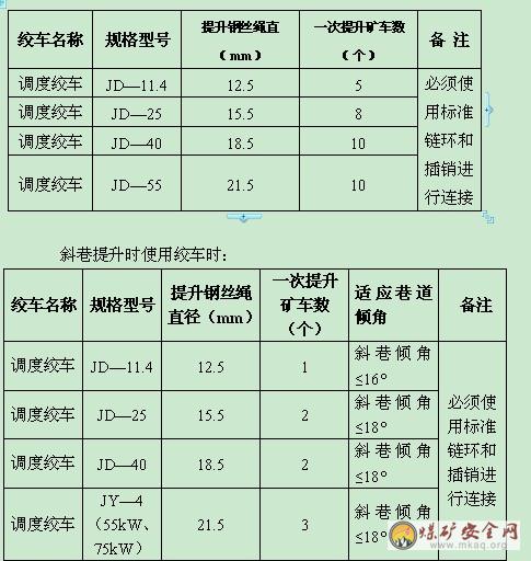 附:小绞车使用钢丝绳及提车数量规定