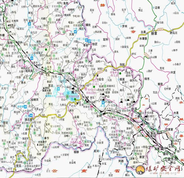 克沟煤矿位于威宁彝族回族苗族自治县城东南方向,从威宁彝族回族苗族自治县城有102省道至水城,从水城沿102省道行驶13km处有至龙场镇的乡村公路,沿该乡村公路行驶3km处有简易公路直通矿区,距离约3km;另外,矿区距贵昆线树舍站约7km,交通方便,详见威宁县龙场镇克沟煤矿交通位置图(图1-1)。