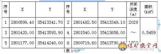 大溪沟煤矿矿区范围拐点坐标表