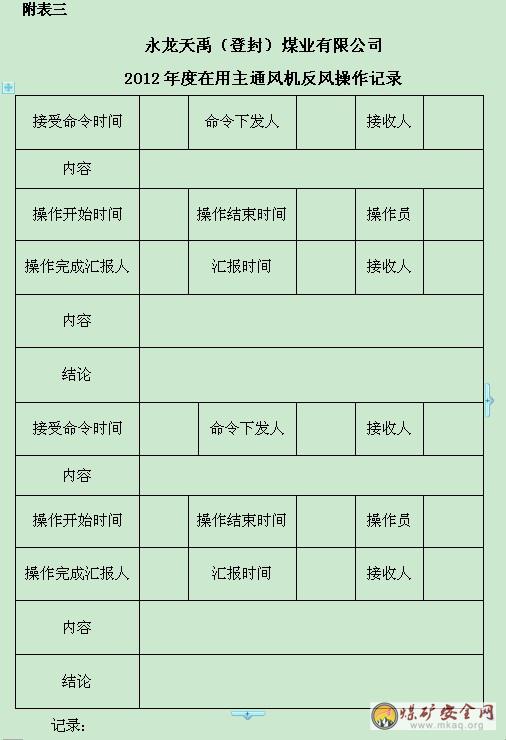 15、主通风机正反转运行状态的观测工作由主通风机司机做好记录。