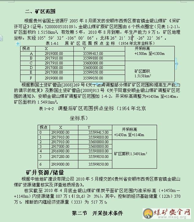 4、金银山煤矿资源开发利用方案说明书。