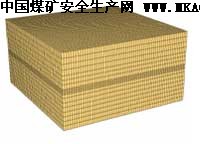 三维计算模型的长、宽、高设置为120m,120m和70m。由于计算模型主要考察巷道、顶板的变形和破坏情况及计算模型的单元所限,对计算模型单元采用不等分划分(见图1)。计算模型共划分有72000个立方体单元,模型侧面限制水平移动,底面限制垂直移动,上部施加上覆岩层的自重应力。