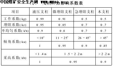 ①支护设计中,支柱实际支撑能力与支柱在采场实际工作状况、增阻过程、支撑不均匀状况和采煤工作面的倾角、采高等因素有关,其计算为:
