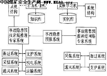 考虑到采矿与巷道掘进系统的事故隐患多,危害严重,该预报系统还借助于人工神经网络的学习能力,开发了晋城矿区采煤、掘进、支护和通风4个生产环节的神经网络专家系统。