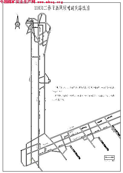 附图:11031工作面回风顺槽避灾路线示意图。