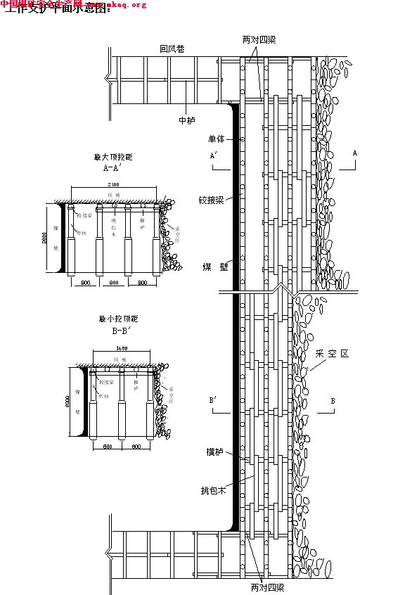 29、回采过程中,根据顶板淋水量、压力、棚顶老巷采空区情况随时进行补探。