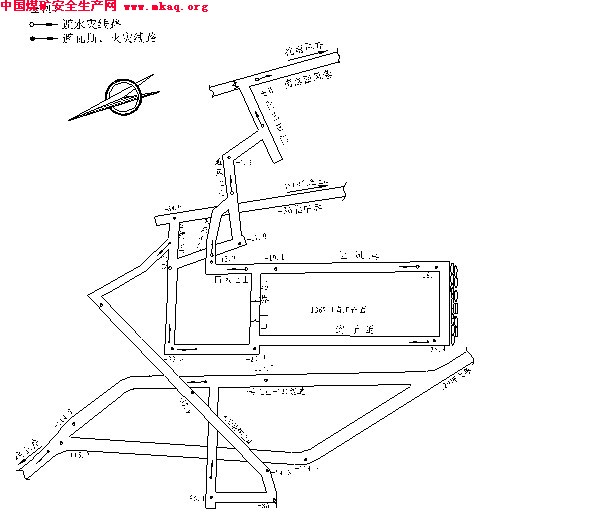 工作面巷道布置及避灾线路图: