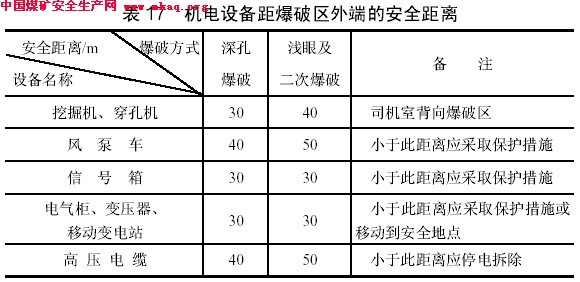 第五百六十七条 各种机电设备距爆破区外端的安全距离应符合表17规定。