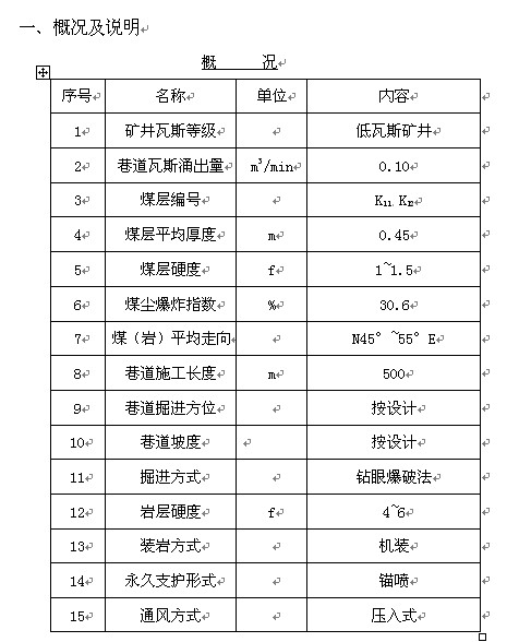 2、矿井瓦斯为低瓦斯矿井,施工中加强瓦斯管理。