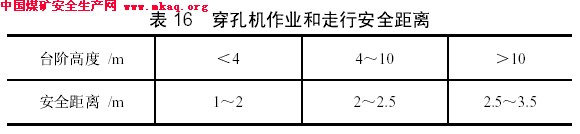 第五百五十三条 穿孔机进行穿孔作业和走行时,履带边缘与坡顶线的距离不得小于表16规定。