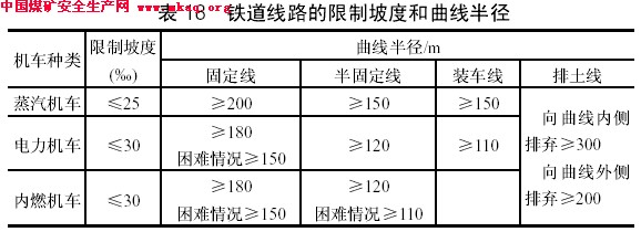 (一)运输线路上各种机车运行的限制坡度和曲线半径应符合表18要求。