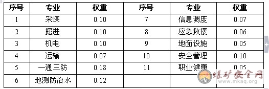 煤矿安全质量标准化标准考核评级计分以100分为满分,按专业得分乘以权重系数,计算结果为矿井总得分。各专业的权重系数见下表。