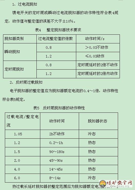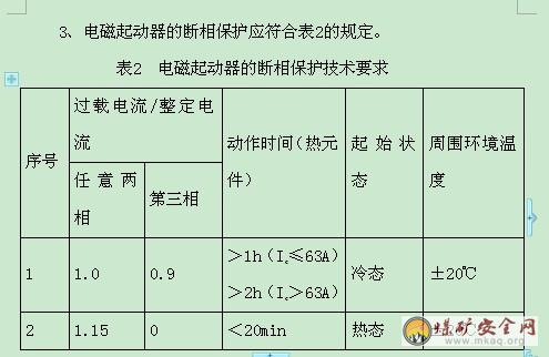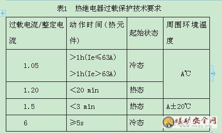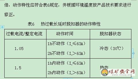 2、电磁起动器用热继电器作过载保护时,其特性应符合表1的规定。用电子保护器作为过载保护时,电磁元件分断时间为8~12ms。