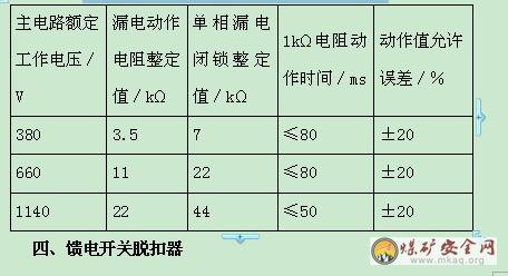 (2)馈电开关的漏电保护和漏电闭锁保护性能符合表3规定。