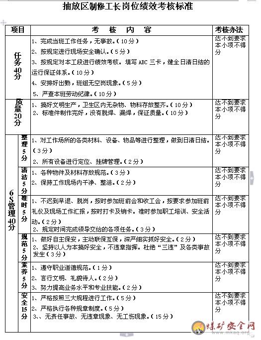 4.1.2认真执行《抽放区制修工长岗位手册》