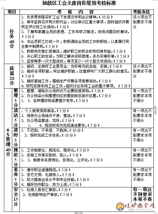 抽放区工会主席岗位4E 标准