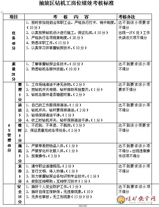抽放区钻机工岗位绩效考核标准