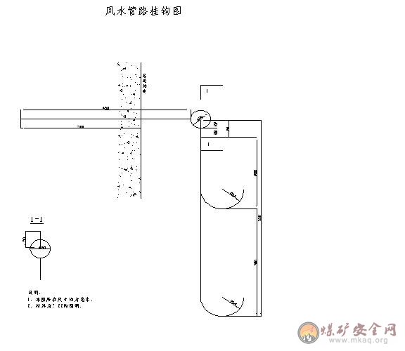 (1)岩巷风水管路采用挂钩固定(见附图),永久管路按照设计要求进行安装。