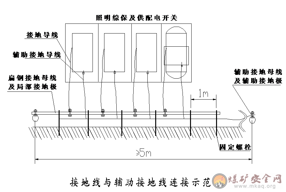 6、每年至少要对主接地极和局部接地极详细检查一次。其中主接地极和浸在水沟中的局部接地极应提出水面检查,如发现接触不良或严重锈蚀等缺陷,应立即处理或更换,并应测其接地电阻值。主、副水仓中的主接地极不得同时提出检查,必须保证一个工作。矿井水含酸性较大时,应适当增加检查的次数。