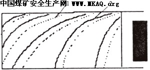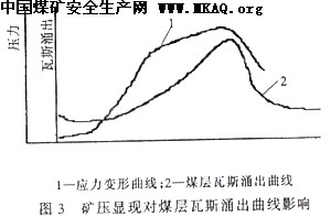 (6)矿压显现。矿压显现对瓦斯涌出速度的影响是通过改变煤层的瓦斯压力、瓦斯存在形态及煤层孔隙特征而影响煤层瓦斯涌出速度。如图3。