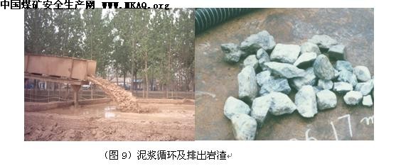 钻进深度800m。钻进时用泥浆临时支护井帮和冷却钻具。通过钻杆中的风管送入压缩空气,用压气升液法将泥浆高速排上地面(又称反循环洗井),达到冲洗井底和携带钻屑的目的。含钻屑的泥浆,经过地面净化处理,返回井中,多余废浆和成井后的大量弃浆可经过快速处理,固化或还原成水和土。