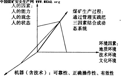 另外,我们还可以依据人机环境系统本质安全化原理来进一步加以分析。人机环境系统本质安全化是指人、机、环境三者安全品质的最佳安全匹配建设,它包括人的本质安全化、机的本质安全化、环境本质安全化三个方面。其中人的本质安全化是核心,机和环境的本质安全化都是围绕着人的本质安全化而开展的。人的本质安全化是指通过对人进行安全心理、安全生理、安全文化及安全技术等多方面的选择和训练,不断的提高人的安全素质、安全生产技能,提高人与其所处的大物质系统之间的安全匹配水平。机的本质安全化是指机具有的可靠性、安全性能、安全防护系统和安全保护系统四个方面的安全化建设。环境本质安全化是指人所处的物理环境、化学环境、生物环境、空间环境和时间环境五个方面的安全化建设。人机环境系统作为一个整体,系统内任何一部分的安全品质变化都会引起相关联的部分发生变化,如果没有相匹配的管理控制手段,系统安全机能就会失调,人机环境系统的安全品质也就达不到优化匹配的效果。煤矿安全管理模式是一种或一套管理理论、管理方法、管理工具,反复用于企业,使企业在运行过程中自觉加强以奠定的管理规则或管理体系,通过其自身的不断循环、优化,失去人机环境系统本质安全化。