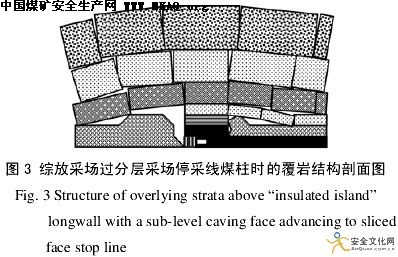 此类采场最大的安全威胁是:①覆岩运动造成“孤岛”煤柱突然破裂而发生冲击地压;②煤柱逐渐破裂之后快速变形,挤出的煤体封堵两巷;③当煤柱变小和采场推过煤柱后,覆岩结构的突然失稳造成支架的冲击载荷,以及大面积片帮“压死”运输机。