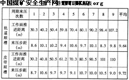 (1)工作面初次来压步距21.5m,周期来压步距为8.3~10.6m,平均9.68m。