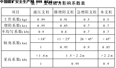 ①支护设计中,支柱实际支撑能力与支柱在采场实际工作状况、增阻过程、支撑不均匀状况和采煤工作面的倾角、采高等因素有关,其计算为: