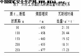 位于三矿南翼的F3302断层,走向N35°E,断层落差20m,倾向SE,在开采过程中,靠近断层处瓦斯有增大趋势,以3106工作面的瓦斯涌出量资料来说明这一问题(表3)。
