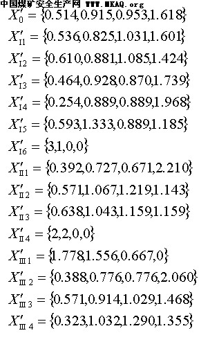 以伤亡事故人数为参考数列,年龄因素、工龄因素、文化程度因素为比较数列,并分别记作X0,XⅠ,XⅡ,XⅢ。