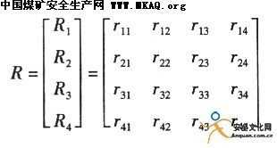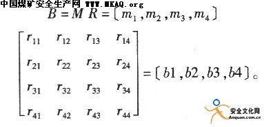 设第i个因素的单因素评价为Ri=(ril,…,rim),它是U的模糊子集。对于一个区域来说,其开采模式的各指标在不同地区有所不同,设在不同地区共测n次,根据统计原则,确定某一指标在uik(u)中各等级中隶属度的次数m,从而确定rik=m/n。以此建立了开采模式的单因素综合评判矩阵,即: