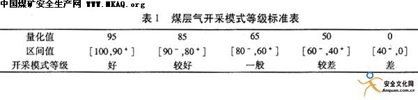 B与量化值之问矩阵的积得出的数值与等级标准表比较得出多级综合评判结果。建立的煤层气开采模式的评价体系如表2。