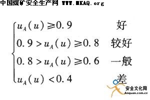 决定开采模式的因素集中的任一指标,属于好与坏的程度构成一个模糊集合,其隶属函数取值于[0,1]区间。根据隶属度的大小,划分为5个等级: